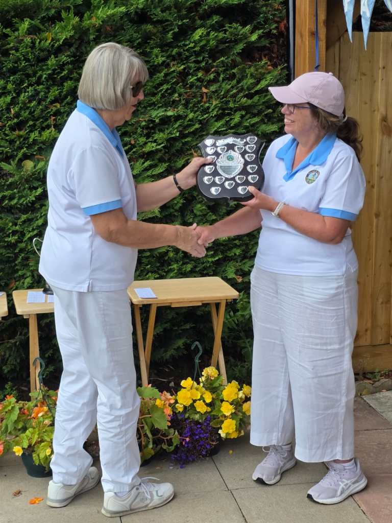 Winner Julia Crosthwaite with runner-up Sue Stenning. Presentation by Club President, Margaret Gearing.