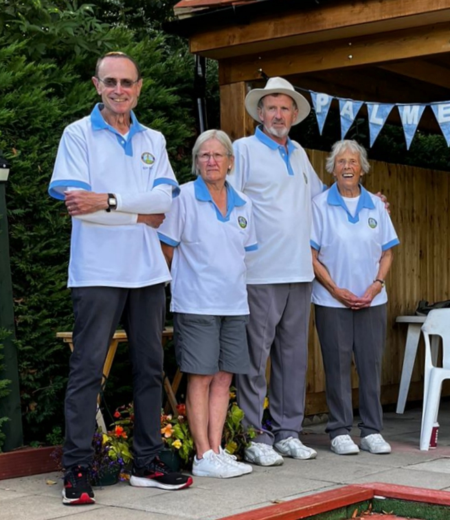 Ladies Pairs winners Heather proctor and Sue Stenning with runners-up, Queeni Wong and Margaret Gearing.