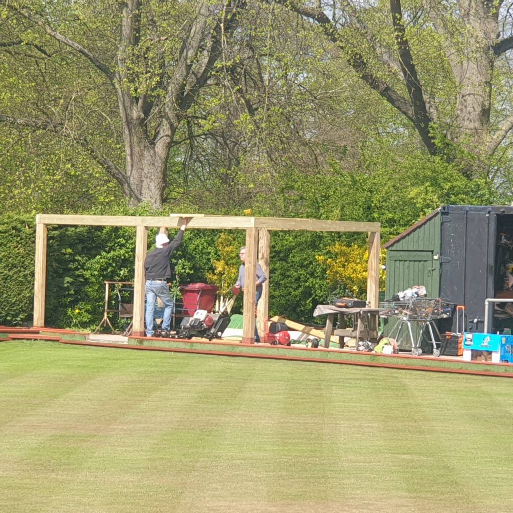 In the late Spring of 2025, a new gazebo was constructed by Club members. Richard Nice designed the structure and led a small team of dedicated members to build a very sturdy shelter. The gazebo is a great addition to the Club and is enjoyed throughout the season, offering a great view of the green whilst giving shelter from the elements.