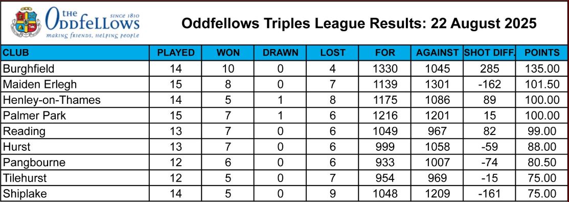 OTL – Latest League Tables – 22nd August 2025