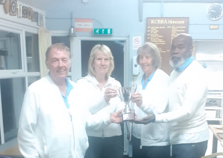 On Friday evening, 1st August 2025, our Club team won the Millennium Cup. Held at Reading Bowls Club, teams from local clubs compete in two divisions, each team (a triple) plays the other teams in the division in a round robin. The winners of each division then play a final consisting of five ends. The Palmer Park team played Tilehurst, Hurst, Pangbourne and an OTL team in their division. The team won three matches and drew one to accumulate seven points out of a possible eight. They met Henley in the final and won by one shot.