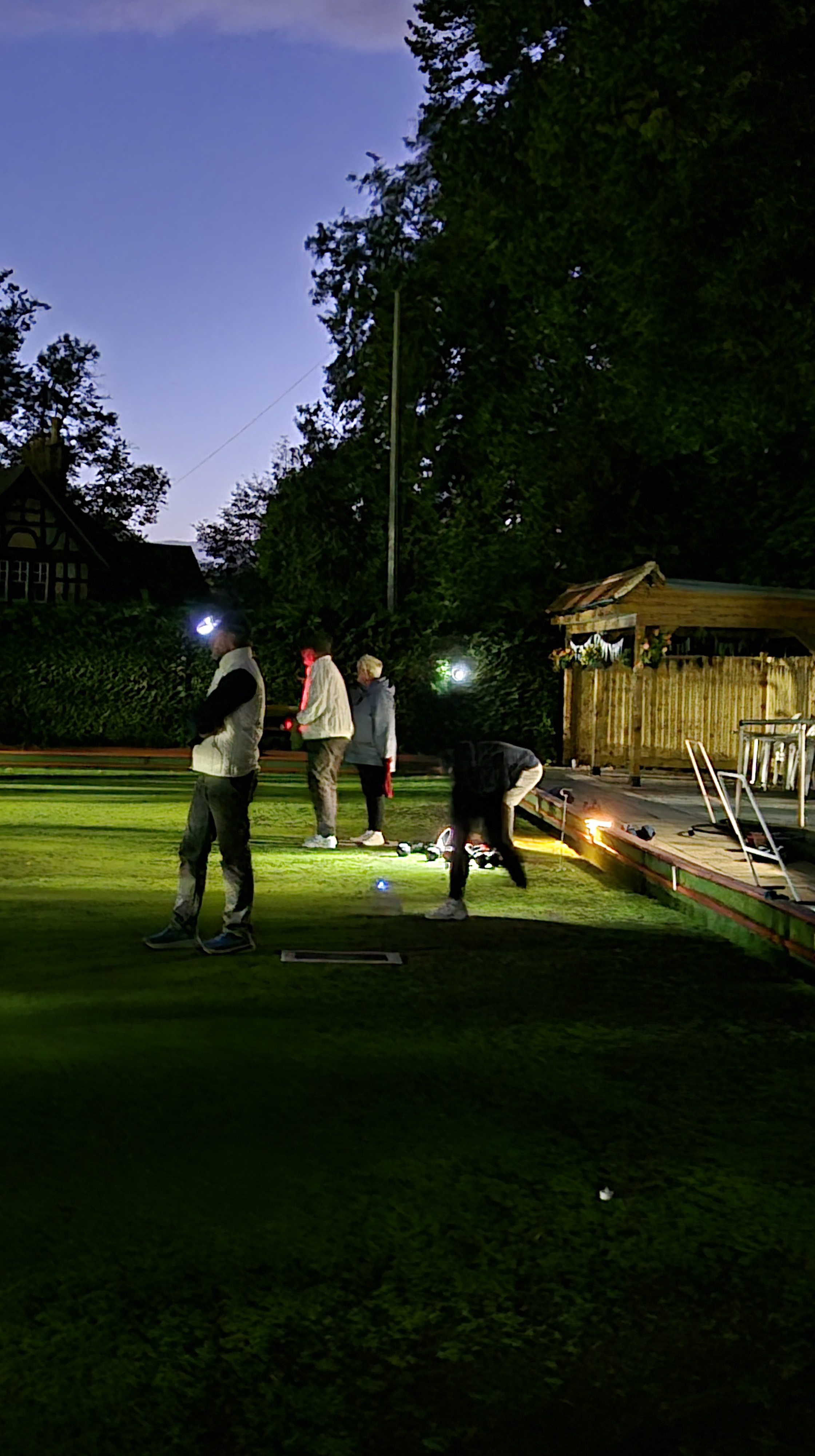 Monday evening 15th September 2025 the Club held the last event of the 2025 season – bowls by candle light. Members enjoyed hot dogs and onions with a few drinks before venturing out on to the green aided only by candles (LED) to mark out the rinks. Torches were needed to guide the bowlers on to the jack! Many thanks to Ken Oakley for organising things.