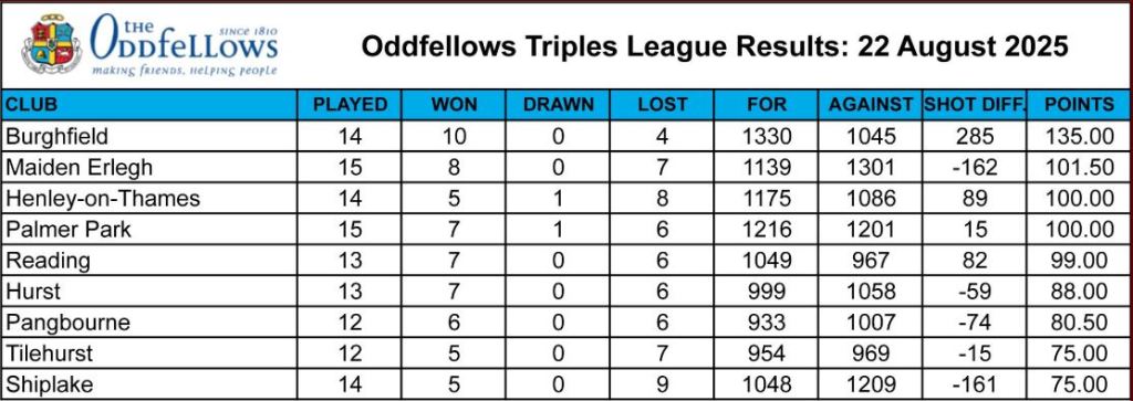 OTL – Current League Table as of 22nd August 2025