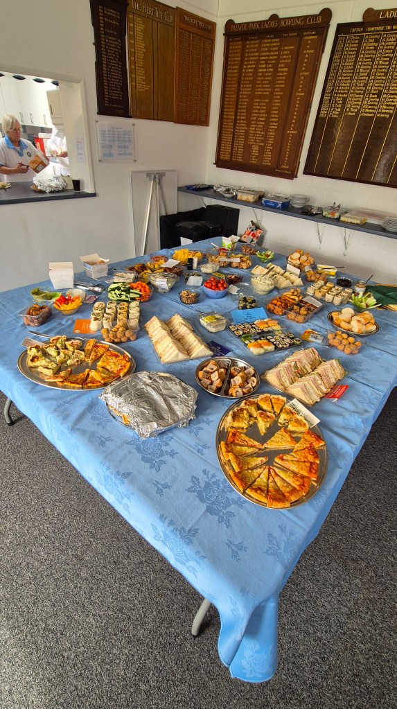 Then it was time for the competition on the green. To start things off there was the Spider – won by Julia Crosthwaite, with the booby prize going to Jan Moore. Members then took part in a three game triples round-robin before retiring to the clubhouse for more food and drink.