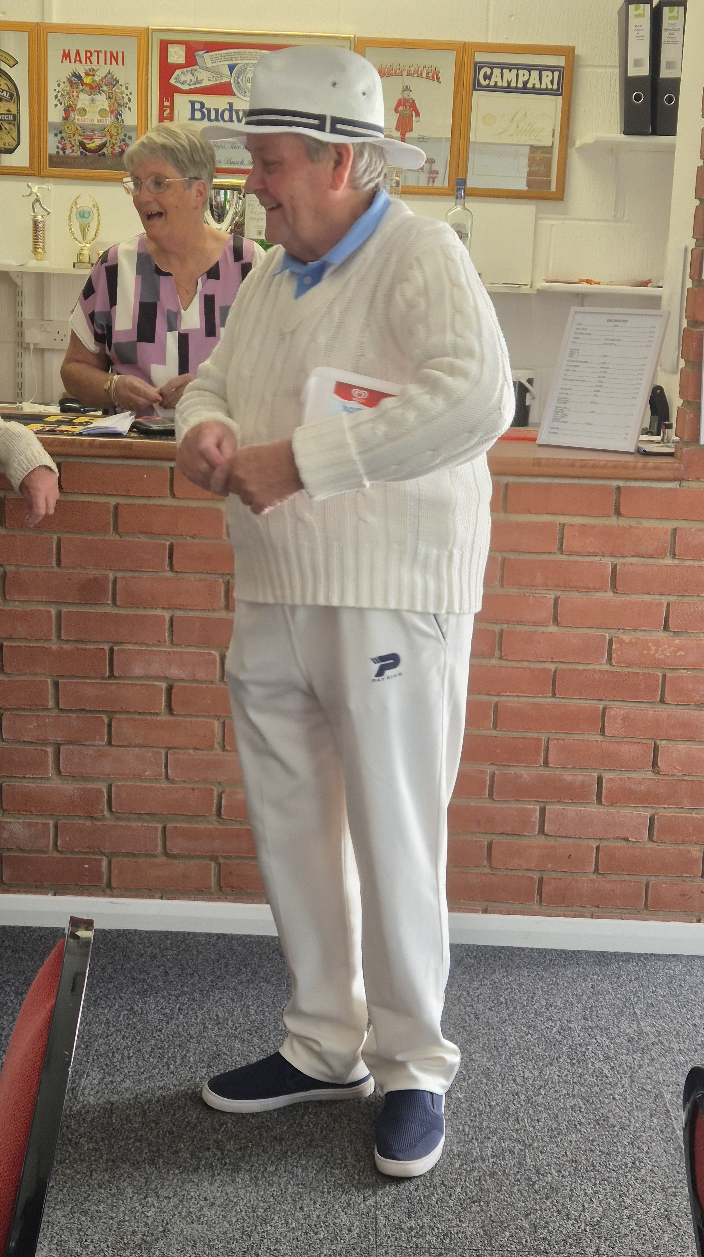 There then followed a poignant moment as we celebrated the outgoing President, Margaret Gearing. Margaret has been a member of the Club for more than twenty years and has been one of our most successful bowlers. Kevin Terry gave a moving speech before Margaret was presented with a gift from the Members.
